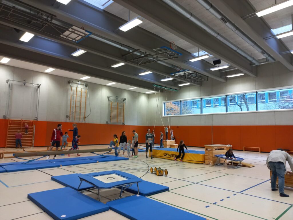 1 Mal im Monat öffnen wir am Sonntagnachmittag die neue Turnhalle für euch. Von 14.00 Uhr bis 15.30 Uhr sind alle Familien eingeladen, Rollbrett zu fahren, über den Kasten zu springen, Körbe zu werfen, Hockeytore zu schießen oder Tischtennis zu spielen. Keine Anmeldung nötig. Kinder bitte nur in Begrleitung ihrer Eltern kommen. Saubere Schuhe nicht vergessen!